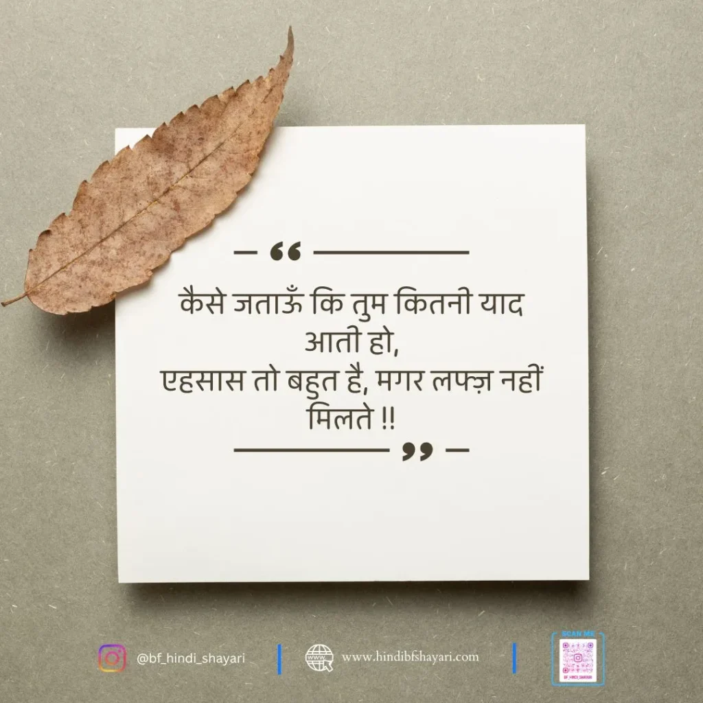 चाहे तुम अपने boyfriend से दूर हो या उनसे बात नहीं हो पा रही हो, या बस उसकी याद दिन-रात सता रही हो – यहां की हर एक line तुम्हारी feelings को पूरी तरह describe करेगी।